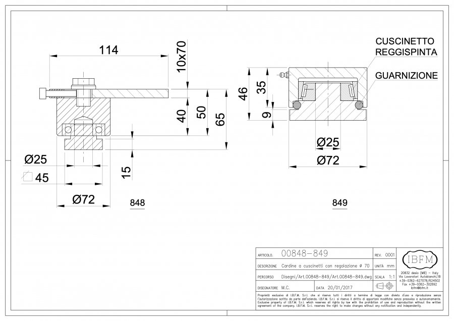 This product is suitable to be welded both on the door and on the frame and allows, through screws, the horizontal regulation of the door leaf in the upper part.