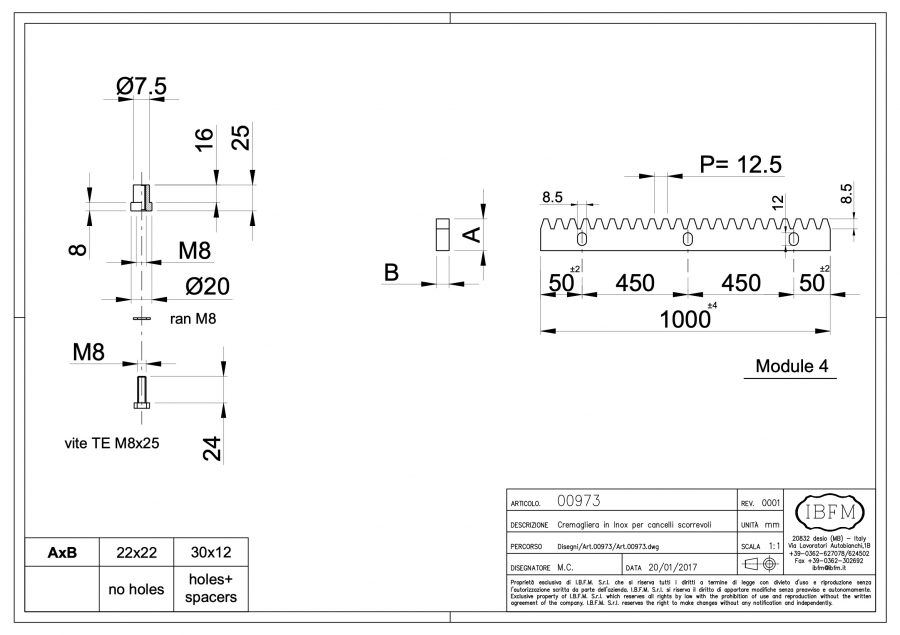 | Item code | AxB | UM | Q.ty | Kg |