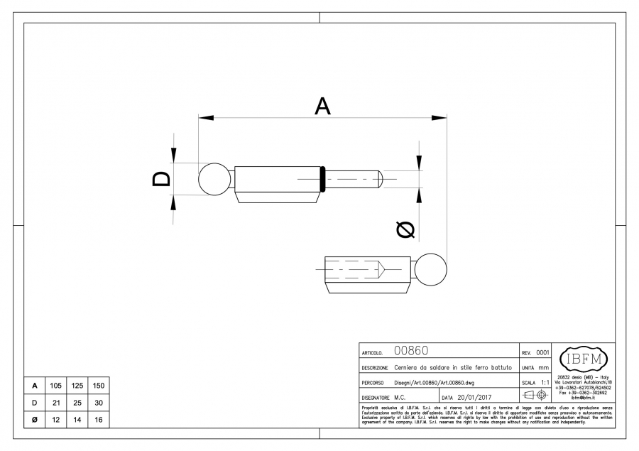 | 860105 | Pernio en Hierro y Arandela en Laton |