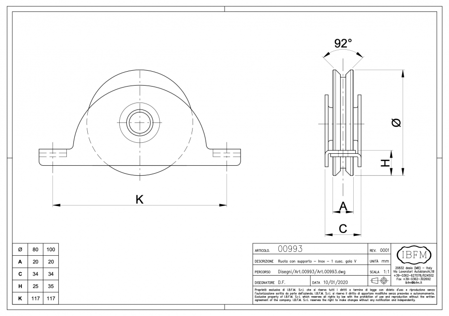 | Código del artículo | Ø | UM | CANT. | Kg | Capacidad (Kgx2pcs) |