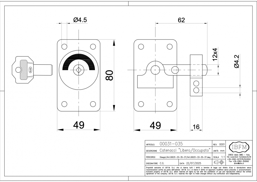 Rotative bolt "Vacant-Engaged" without key.