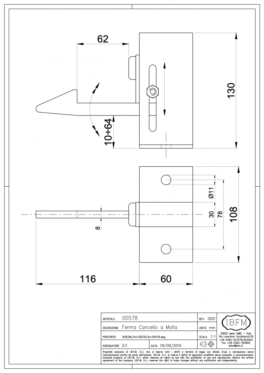 It is used with single or double winged gates in order to hold in position the gate’s leaves during a various number of situations such as multiple passages, maintenances, etc etc… Could be regulated in height and could also be installed in different positions, for different purposes. Thanks to the strong constructions, it is suitable to help holding heavy gates leaves. The rubber bumper also helps in the final closing process without shocks or damages to the gate leave itself and helping with the noise reduction.