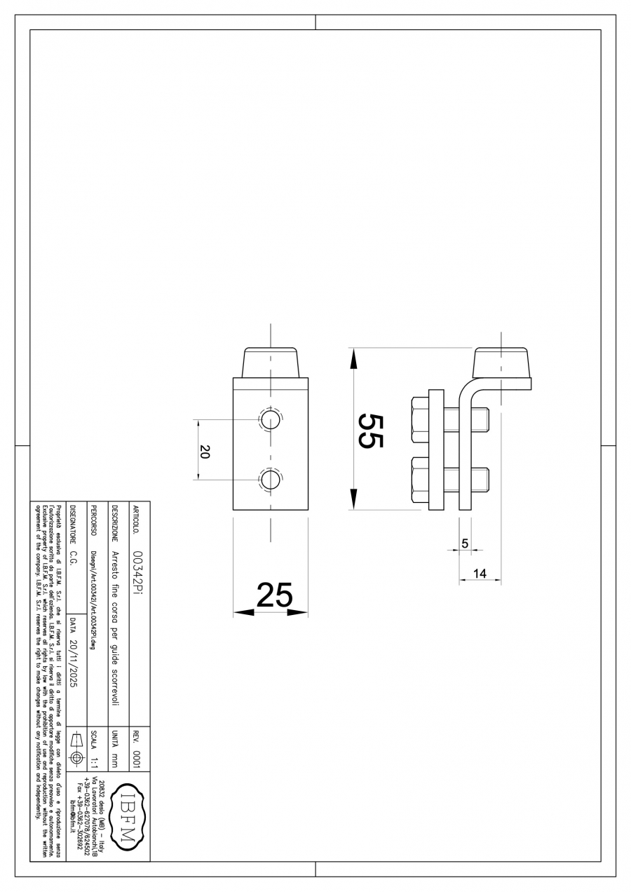 Final Stopper for trolleys track Art. 339P and Art. 339M. This product is used in order to stop the sliding of the trolleys inside the track. Usually it is installed as a limiter of the opening or the closing of hanged gates.