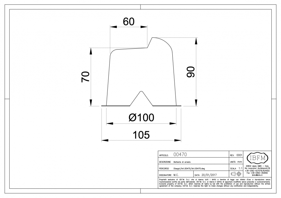 It is usually used with double winged gates, in the center of the opening in order to stop and align the 2 wings of the gate when they’re closed. This product is very important because, thanks to the correct positioning, it allows the correct functioning of electric strikes (horizontally). Moreover, by drilling a hole in the flat part of the stopper in the correct position, could be used together with both manual and automatic security bolts (vertically). Could also be installed in different positions, for different purposes and using customized brackets or supports.