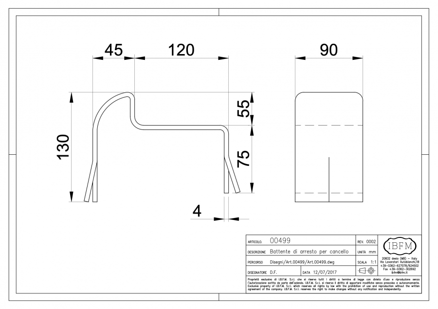 It is usually used with double winged gates, in the center of the opening in order to stop and align the 2 wings of the gate when they’re closed. This product is very important because, thanks to the correct positioning, it allows the correct functioning of electric strikes (horizontally). Moreover, by drilling a hole in the flat part of the stopper in the correct position, could be used together with both manual and automatic security bolts (vertically). Could also be installed in different positions, for different purposes and using customized brackets or support.