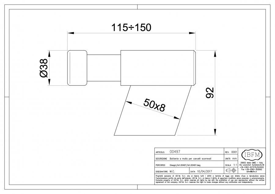 This product is typically aligned with the sliding track and the closing direction of the gate leave. Usually it is welded at the end of the sliding track, directly on sliding groove. Could be installed also in different positions, for different purposes and using customized brackets or support. Thanks to the strong constructions, it is suitable to help stopping heavy gates leaves. The rubber bumper and in particular the internal spring, help in the final closing process without shocks or damages to the gate leave itself and helping with the noise reduction.