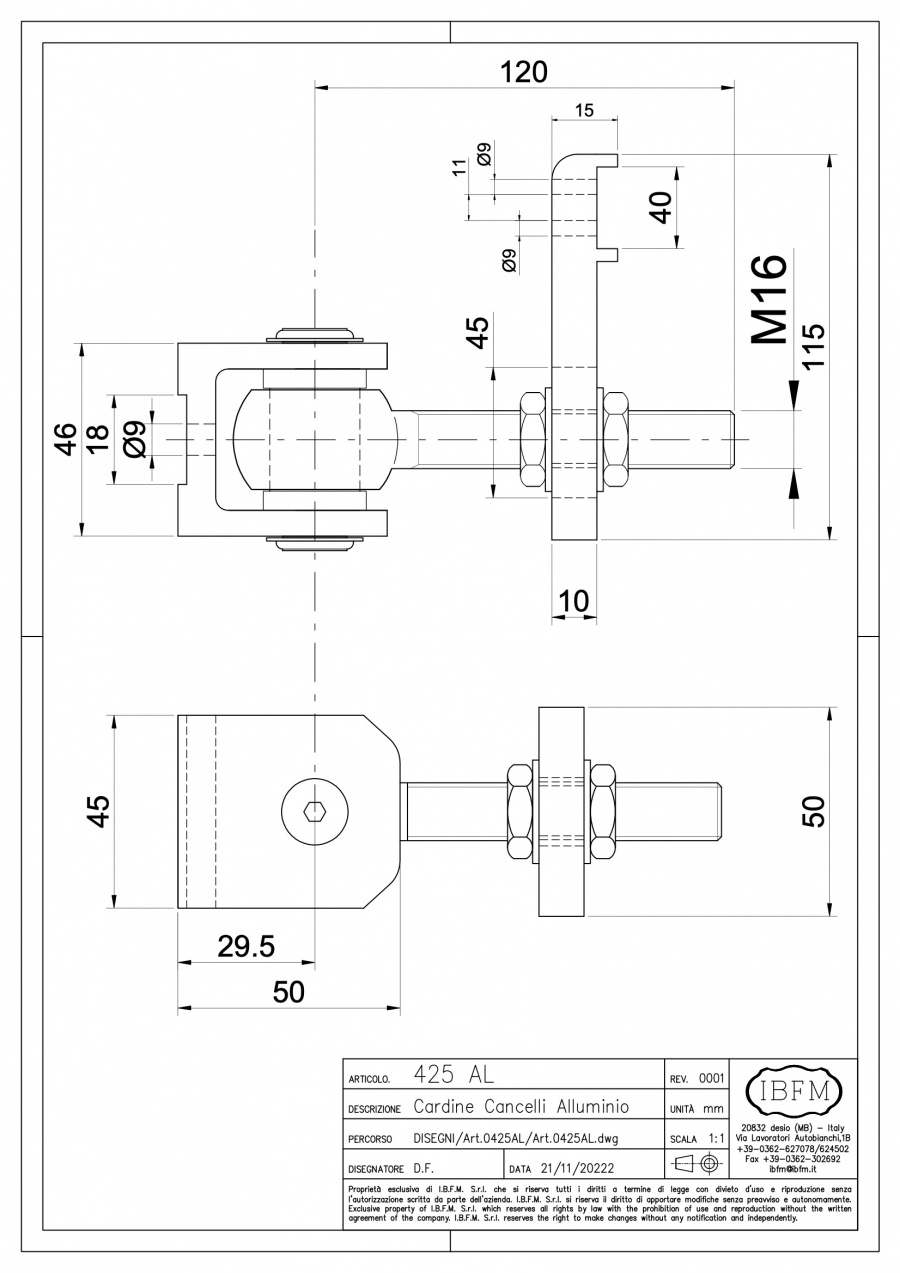 | 425AL | Cerniera in Ferro Zincato - Piastra in Alluminio |