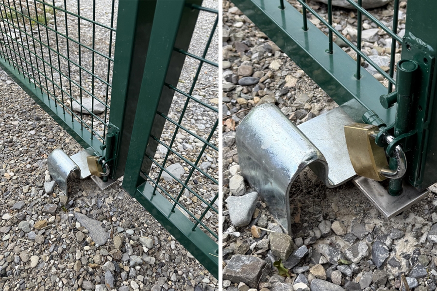 The functioning is assured by operating on the bar. The stability of the closing in assured by the hidden spring which keeps in position the closing bar, for added security it is possible to apply a padlock to the bolt.