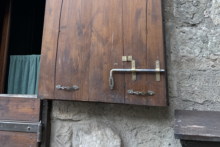 Bolt for padlock to be screwed on wooden surface. To be used in order to lock door leaves and gates.