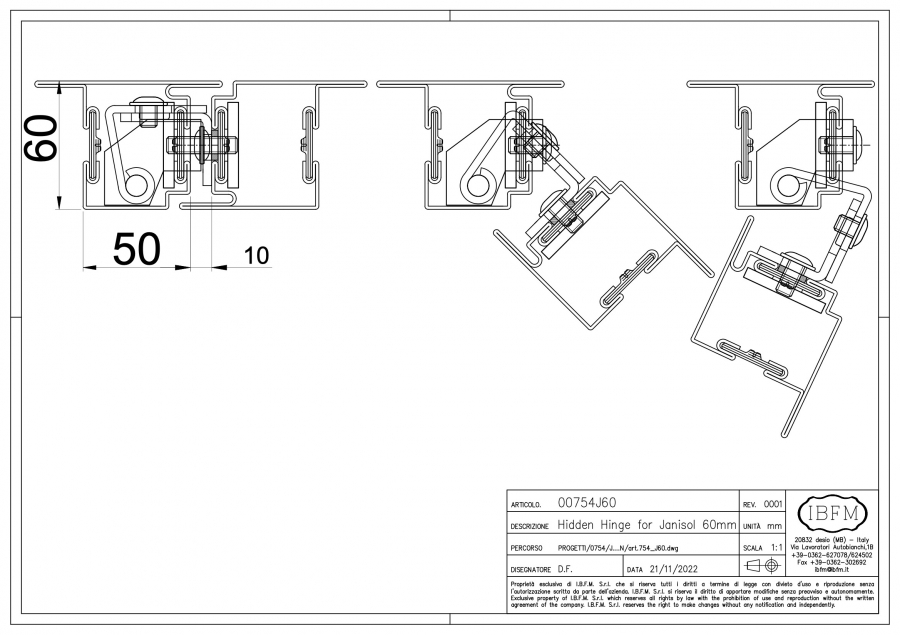 Cerniera 3D a Scomparsa per Profili tipo Jansen Janisol 60mm