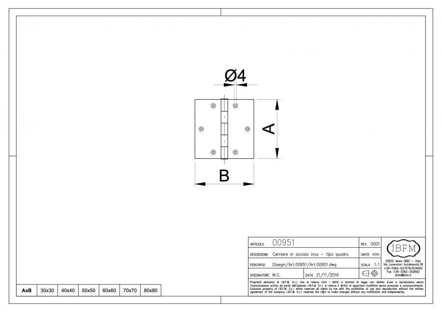 | Codice articolo | AxB | UM | Q.tà | Kg |