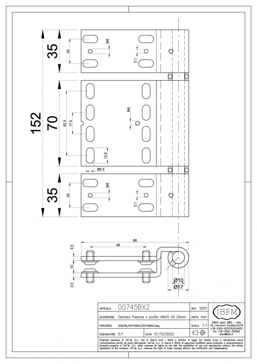 Heavy duty regulating external hinges with ball bearings suitable for many different profiles; in particular for profiles like FORSTER UNICO XS 20mm. Suitable to be installed on heavy doors, security doors, fire and smoke-proof doors, entrance doors. The installation process is made easy thanks to the position and installation of these hinges: they can be directly installed frontally with the door opened. With the opened door is also allowed an easy maintenance, regulation, and eventual substitution, still avoiding possible vandalic actions. Depending on the model, the installation is performed thanks to screws, counter plates and eventually rivet nuts. On these hinges, on request and with enough quantity, it’s possible to ask for customization of the shape, sizes, finishing and more.