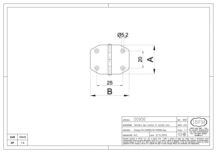 | Codice articolo | AxB | UM | Q.tà | Kg |