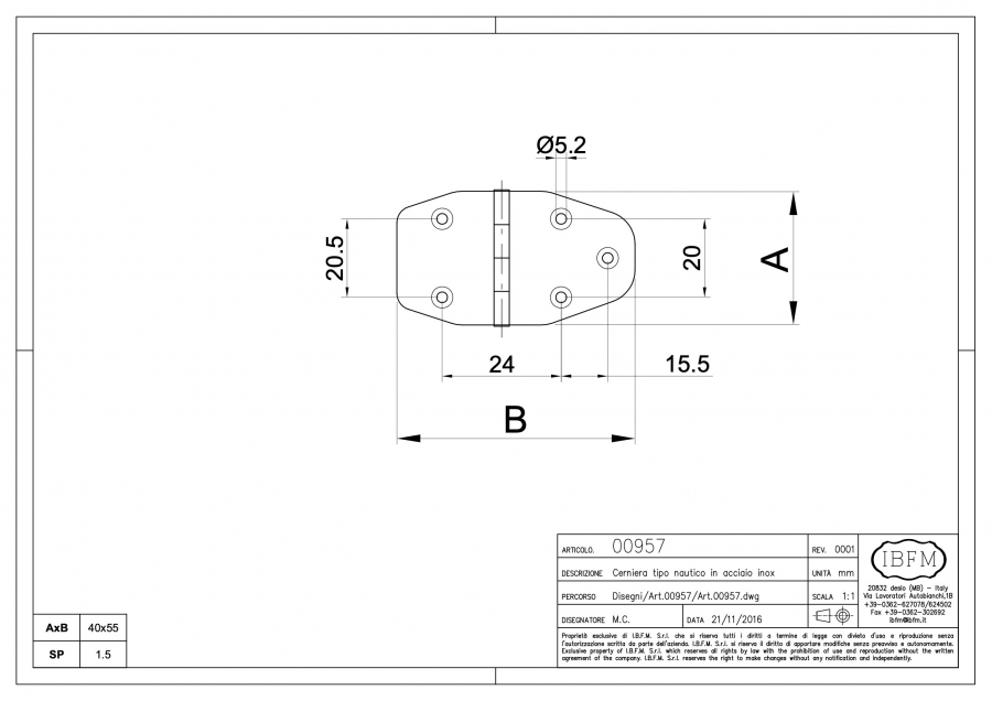 | Codice articolo | AxB | UM | Q.tà | Kg |