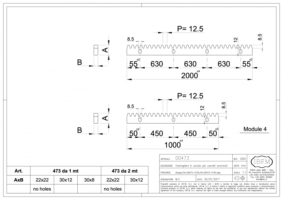 It is very important to position the rack at a suitable height referring to the height of the motor’s gear. An inaccurate match between the 2 parts can result in deterioration both of the rack and the motor’s gear.