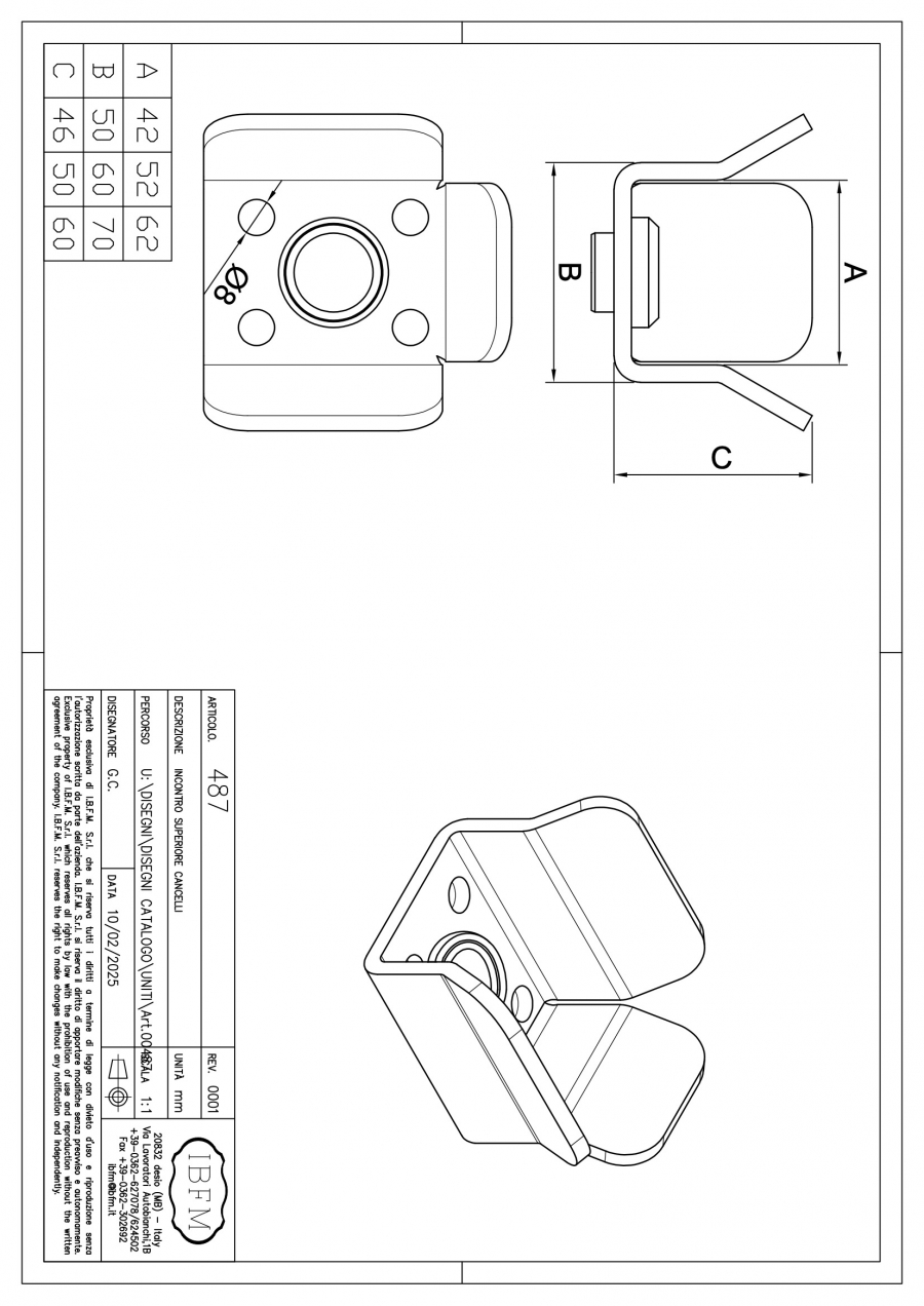 Upper staple with rubber bumper suitable for Cantilever and Sliding Gates Systems. This staple is not adjustable; to be used in accordance with the dimension of the pipes, 40mm.