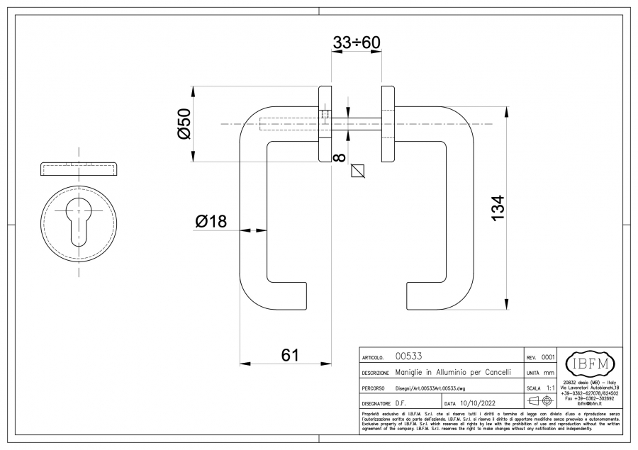 | 533 | In Alluminio anodizzato Argento |