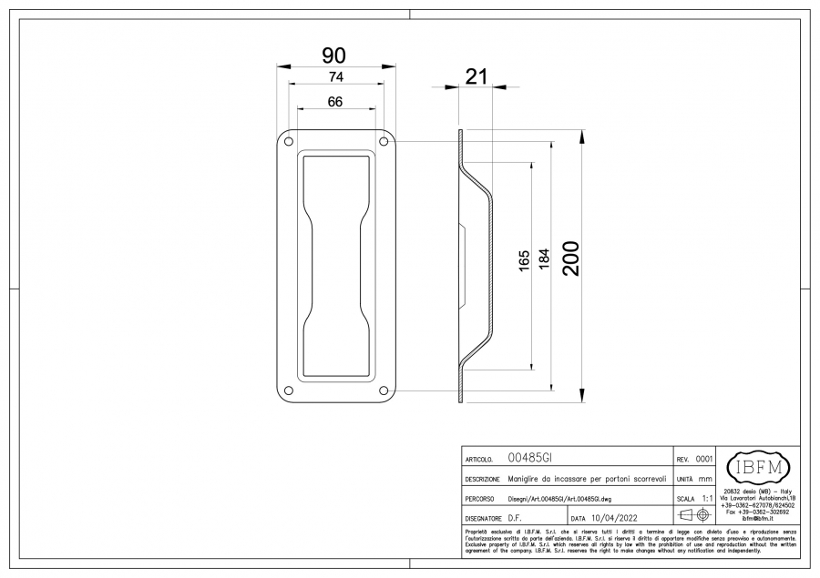 Maniglia da incassare per Portoni Scorrevoli - Tipo Grande