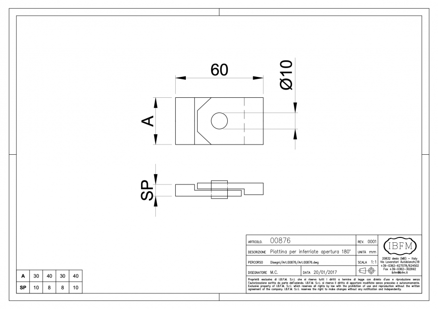 | Codice articolo | AxSP | UM | Q.tà | Kg |