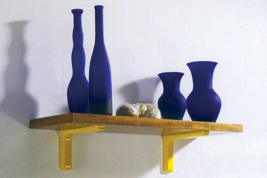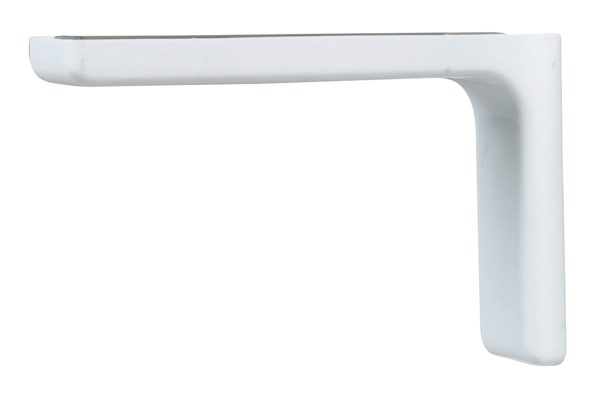 Metal bracket with plastic cover to be screwed on cement walls and suitable to many wooden, metal or other material shelves. Complete with screw and plugs.
