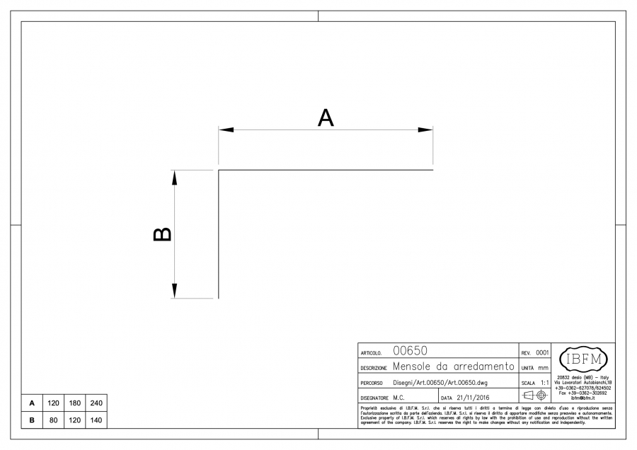 | Codice articolo | A | UM | Q.tà | Kg |