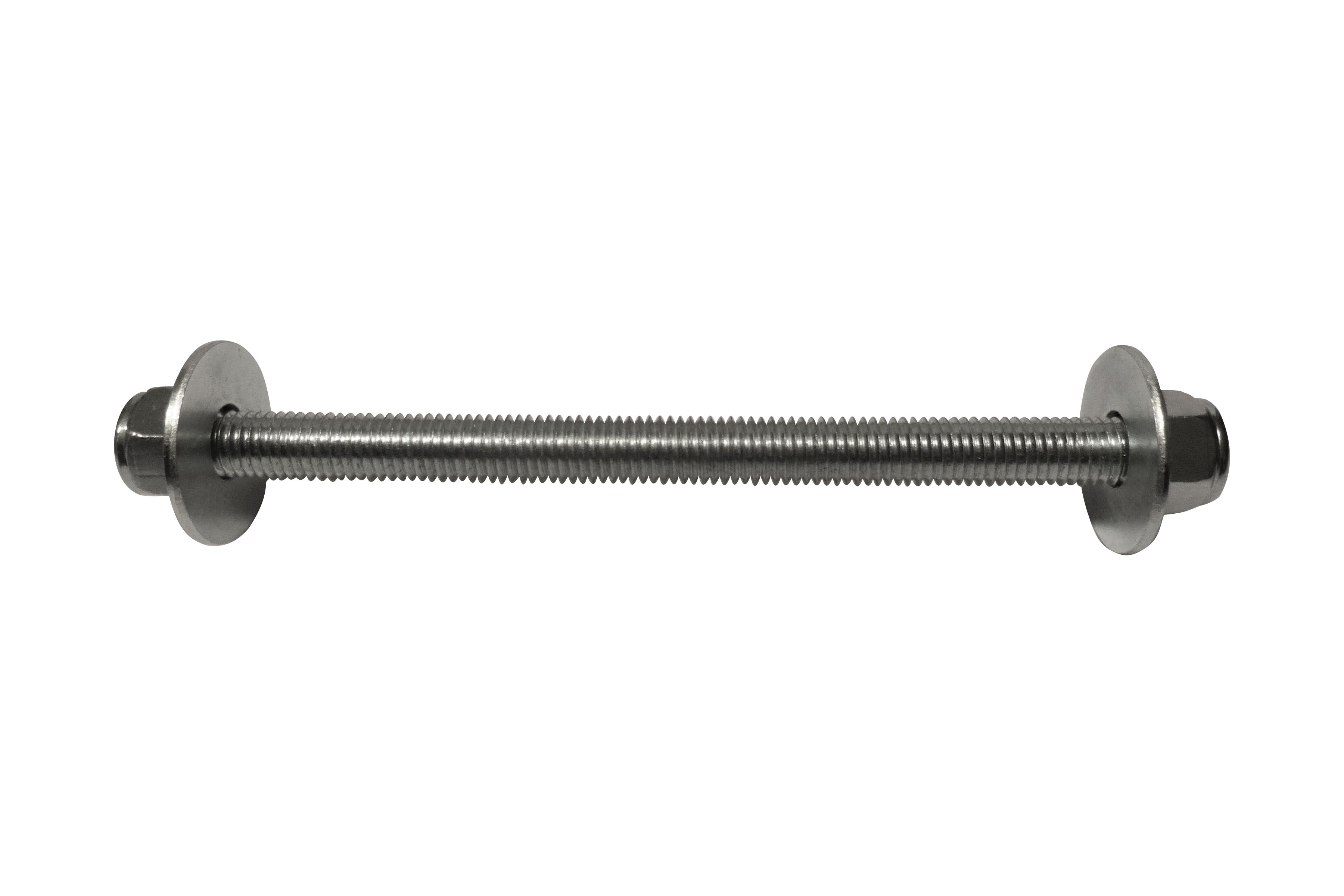 Installation bar for safety cables Art. 540. It consists of a M12 threaded bar, 180mm in lenght, wich is used to keep the safety cable in position. It also assures the necessary streght to keep the security cable in position when the load of a falling gate is applied. This product comes complete with extra wide washers and 2 M12 auto-locking nuts in order to prevent a possible unscrewing