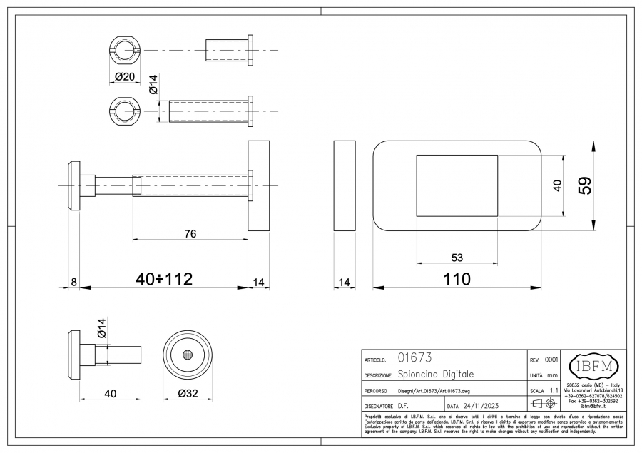 This useful and elegant digital door viewer, is equipped with a 2.6 LCD screen "TFT with a resolution of 0.3 MPIX. Suitable for 38-110mm thick doors, it is complete with batteries and spacer.