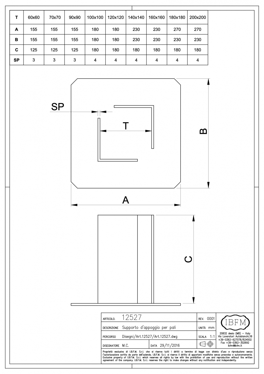 | Codice articolo | A | UM | Q.tà | Kg |